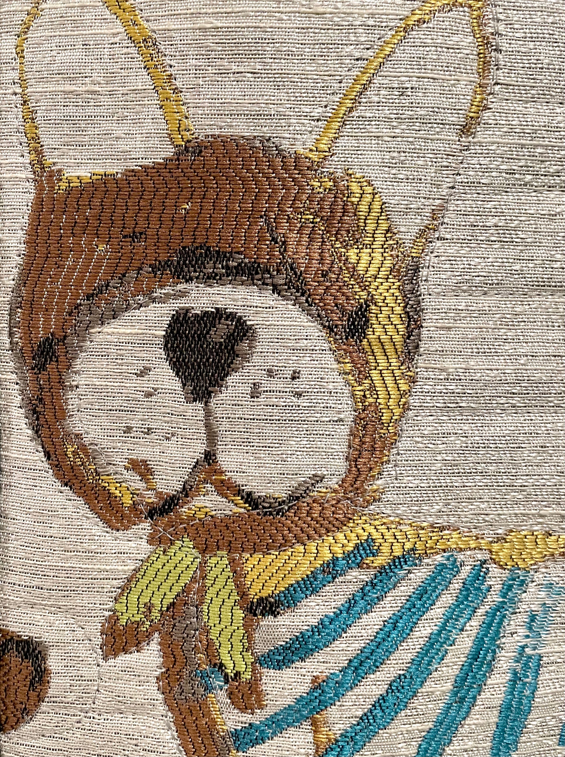 FRENCHIE is a sturdy and stylish work companion - about a "three gallon" carry all with a quilted French bull dog adorning the front and guarding your goods. Large interior pocket with 7" brass zipper.